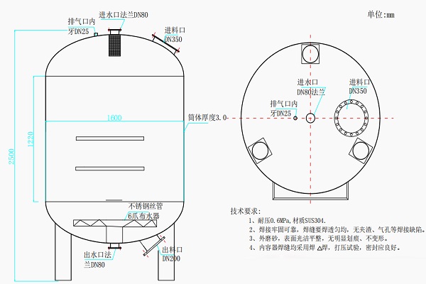 機(jī)械過濾器整體內(nèi)部結(jié)構(gòu)SUS304不銹鋼材質(zhì)罐體,濾料層,進(jìn)出水法蘭,排氣閥,進(jìn)料口,布爪器、反洗排水口、順洗排水口、壓縮空氣進(jìn)口等環(huán)節(jié)組成。